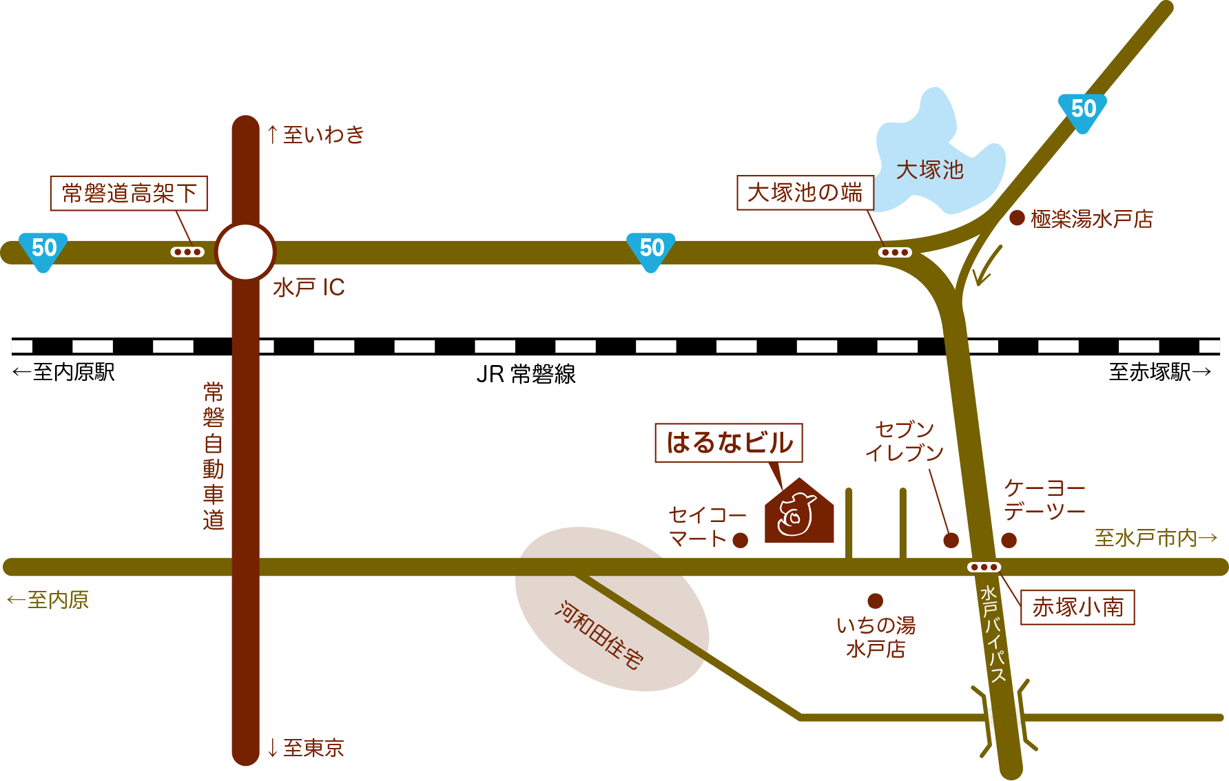 〒311-4152 茨城県水戸市河和田3丁目2281-6はるなビル1F